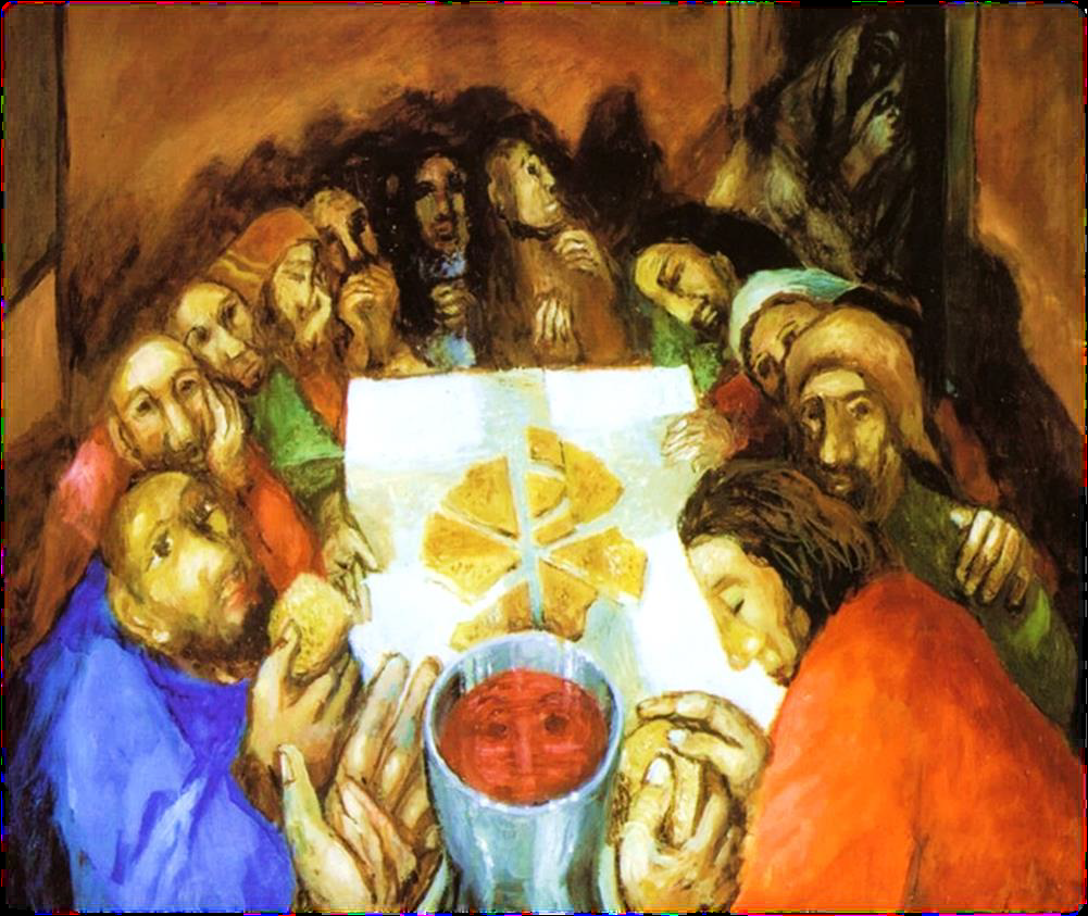 Mentre il loro Maestro infatti presenta loro il pane e il vino spiega ciò che di lì a poco avrebbero visto: il suo corpo spezzato dalle armi e dalla tortura, e il suo sangue versato sulla croce.